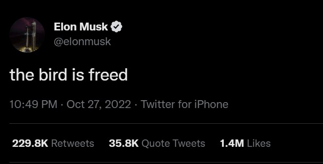 On October 27, 2022, so almost exactly a month ago, Elon Musk, the richest man in the world, CEO of Tesla and SpaceX, US government military contractor and all-around global-capitalist oligarch with a net worth approaching $200 billion, completed his acquisition of Twitter, the notorious “hell-site” where Donald Trump, the Russian-backed literal Resurrection of Hitler, Jordan Peterson, the “lobster hierarchy” guy, Alex “the Devil Incarnate” Jones, and assorted members of the “deplorable” masses had been wantonly perpetrating acts of “hate speech,” disseminating “disinformation,” and otherwise unrestrainedly expressing themselves, until Twitter’s “content moderators” started censoring, deboosting, and deplatforming everyone whose views and opinions they didn’t like.