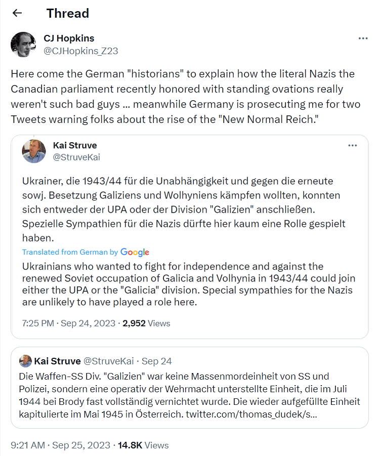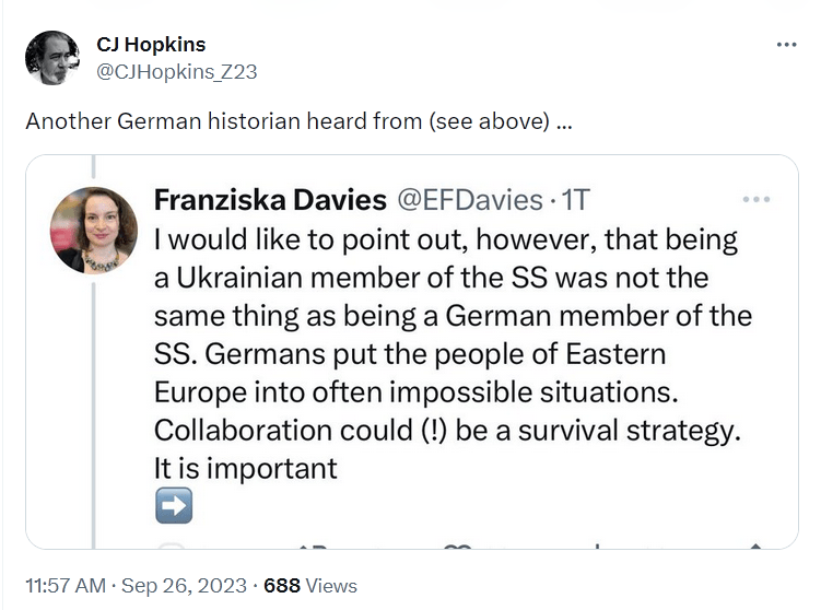 Anyway, someone drew attention to Yaroslav Hunka’s Nazi history, and the shit hit the fan on social media. The stink soon spread to the corporate and state media, which had no choice but to get on the bandwagon. They couldn’t get away with ignoring the story, so they were forced to report it, and spin it as a “blunder.”