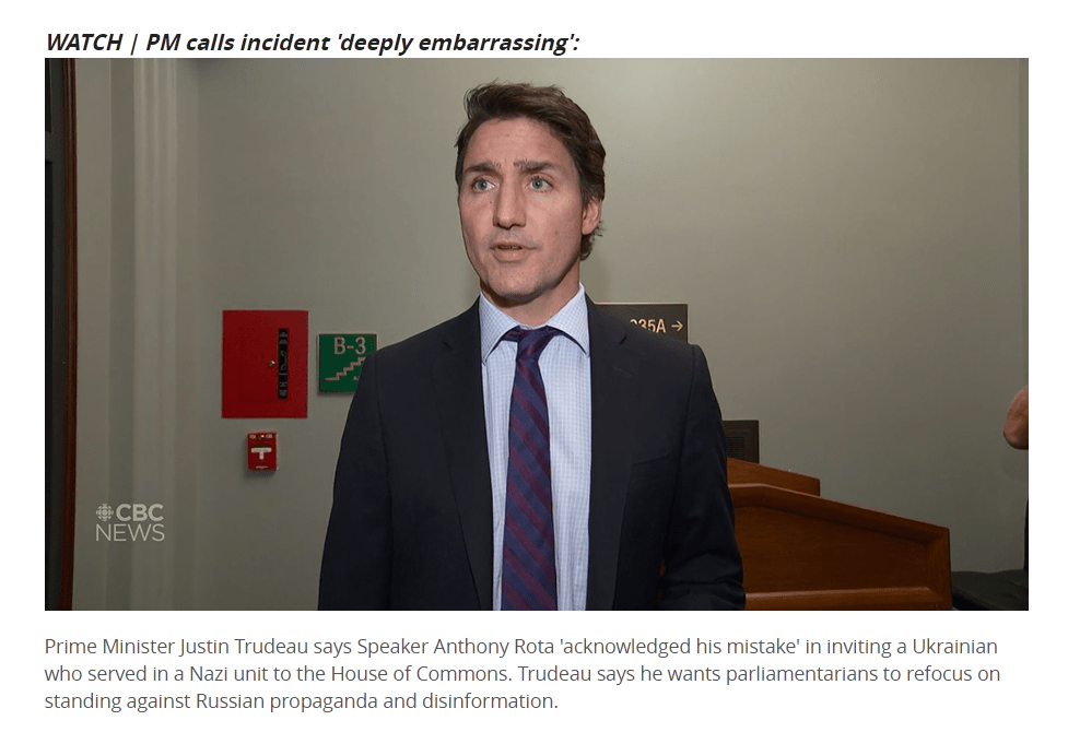 The speaker of the House fell on his sword and resigned. Trudeau called the episode “deeply embarrassing,” and implied that the Russians had somehow tricked him and his cronies into cheering for a literal Nazi with their devious “Russian disinformation” operations.