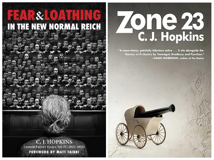 DISCLAIMER: The preceding essay is entirely the work of our in-house satirist and self-appointed political pundit, CJ Hopkins, and does not necessarily reflect the views and opinions of the Consent Factory, Inc., or its staff, or any of its agents, subsidiaries, or assigns. If, for whatever inexplicable reason, you appreciate Mr. Hopkins’ work and would like to support it, please go to his Substack page, or his Patreon page, or send a contribution to his PayPal account, so that maybe he’ll stop coming around our offices trying to hit our employees up for money. Alternatively, you could purchase his satirical dystopian sci-fi novel, Zone 23, or Volumes I, II, III, and IV of his Consent Factory Essays, or any of his subversive stage plays, which won some awards in Great Britain and Australia. If you do not appreciate Mr. Hopkins’ work and would like to write him an abusive or threatening email, feel free to contact him directly.