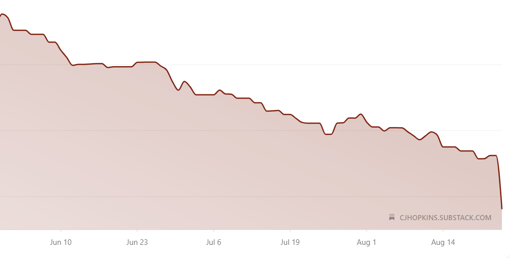DISCLAIMER: The preceding essay is entirely the work of our in-house satirist and self-appointed political pundit, CJ Hopkins, and does not necessarily reflect the views and opinions of the Consent Factory, Inc., or its staff, or any of its agents, subsidiaries, or assigns. If, for whatever inexplicable reason, you appreciate Mr. Hopkins’ work and would like to support it, please go to his Substack page, or his Patreon page, or send a contribution to his PayPal account, so that maybe he’ll stop coming around our offices trying to hit our employees up for money. Alternatively, you could purchase his satirical dystopian sci-fi novel, Zone 23, or Volumes I, II, III, and IV of his Consent Factory Essays, or any of his subversive stage plays, which won some awards in Great Britain and Australia. If you do not appreciate Mr. Hopkins’ work and would like to write him an abusive or threatening email, feel free to contact him directly.